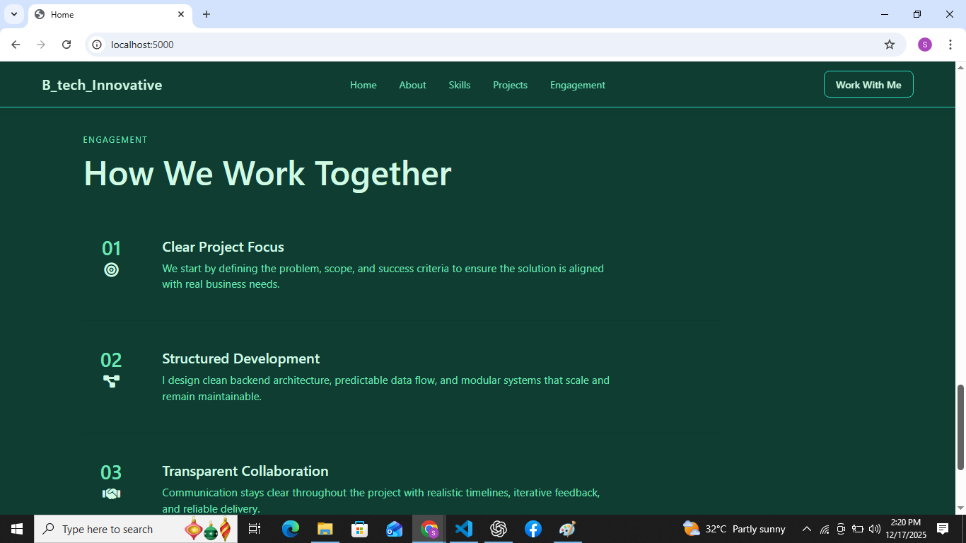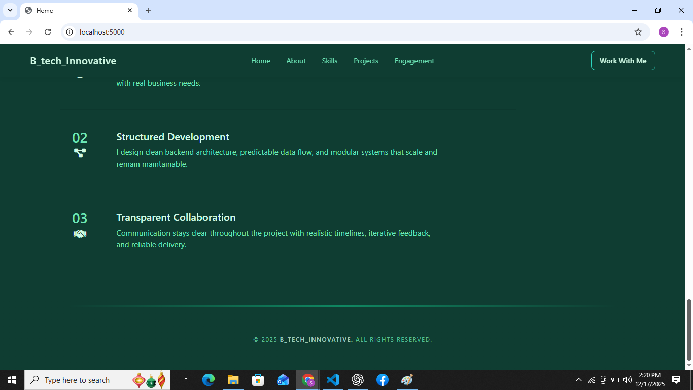 I value: Clean, well-structured code Clear communication and realistic timelines Solutions that are secure, scalable, and easy to maintain