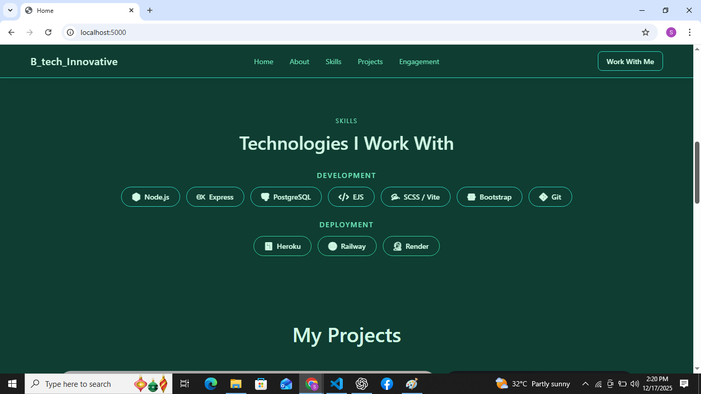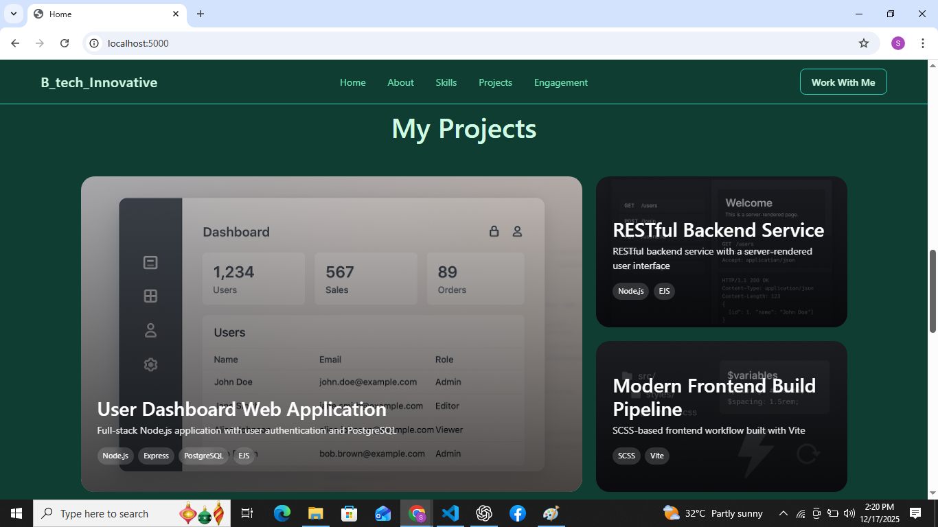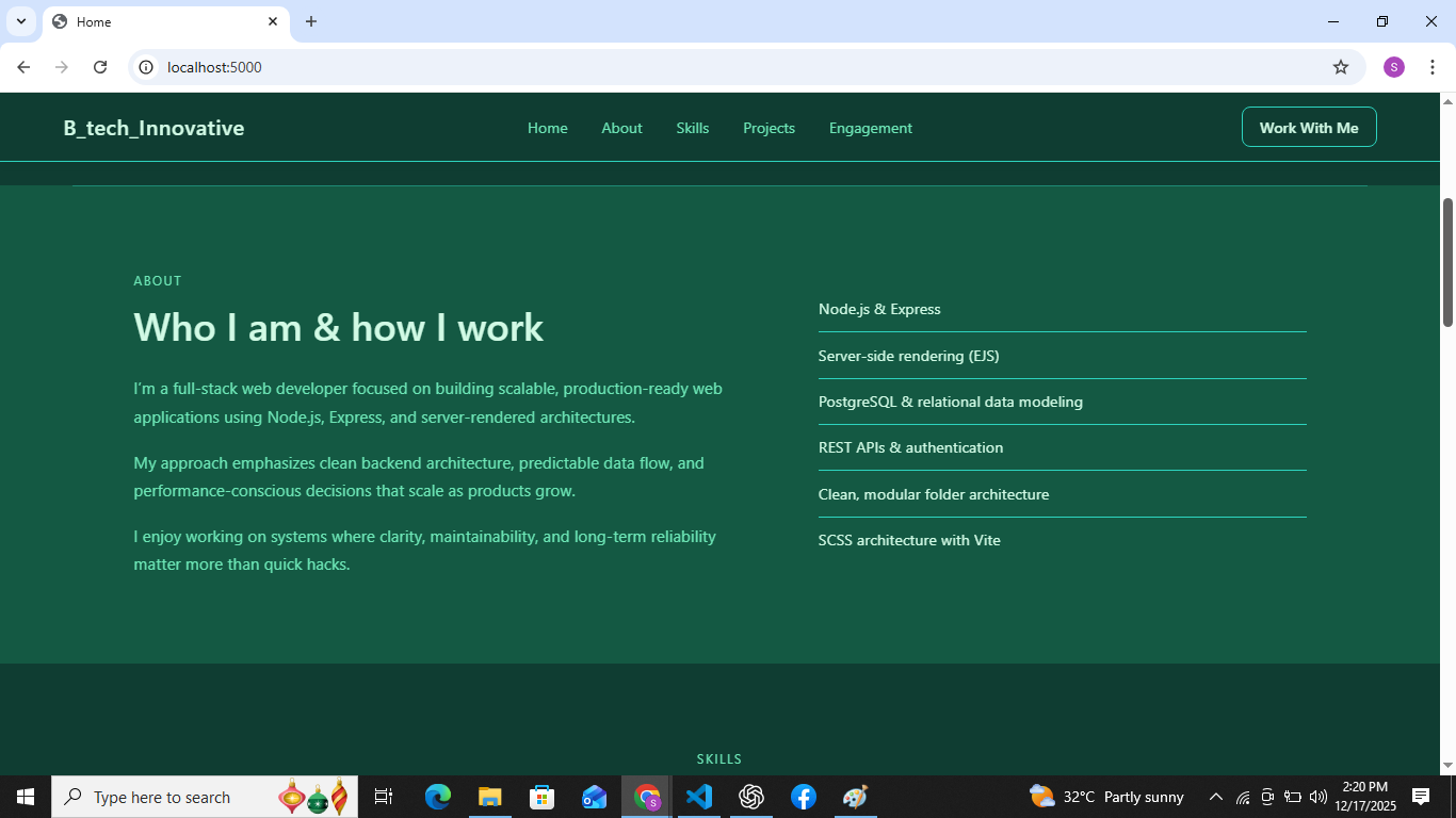 On the backend, I design robust APIs and server logic using Node.js and Express, with experience working with both PostgreSQL and MongoDB for efficient data modeling and performance. On the frontend, I build responsive and modern interfaces using React, EJS, SCSS, and the Vite compiler, ensuring fast load times and smooth user experiences.