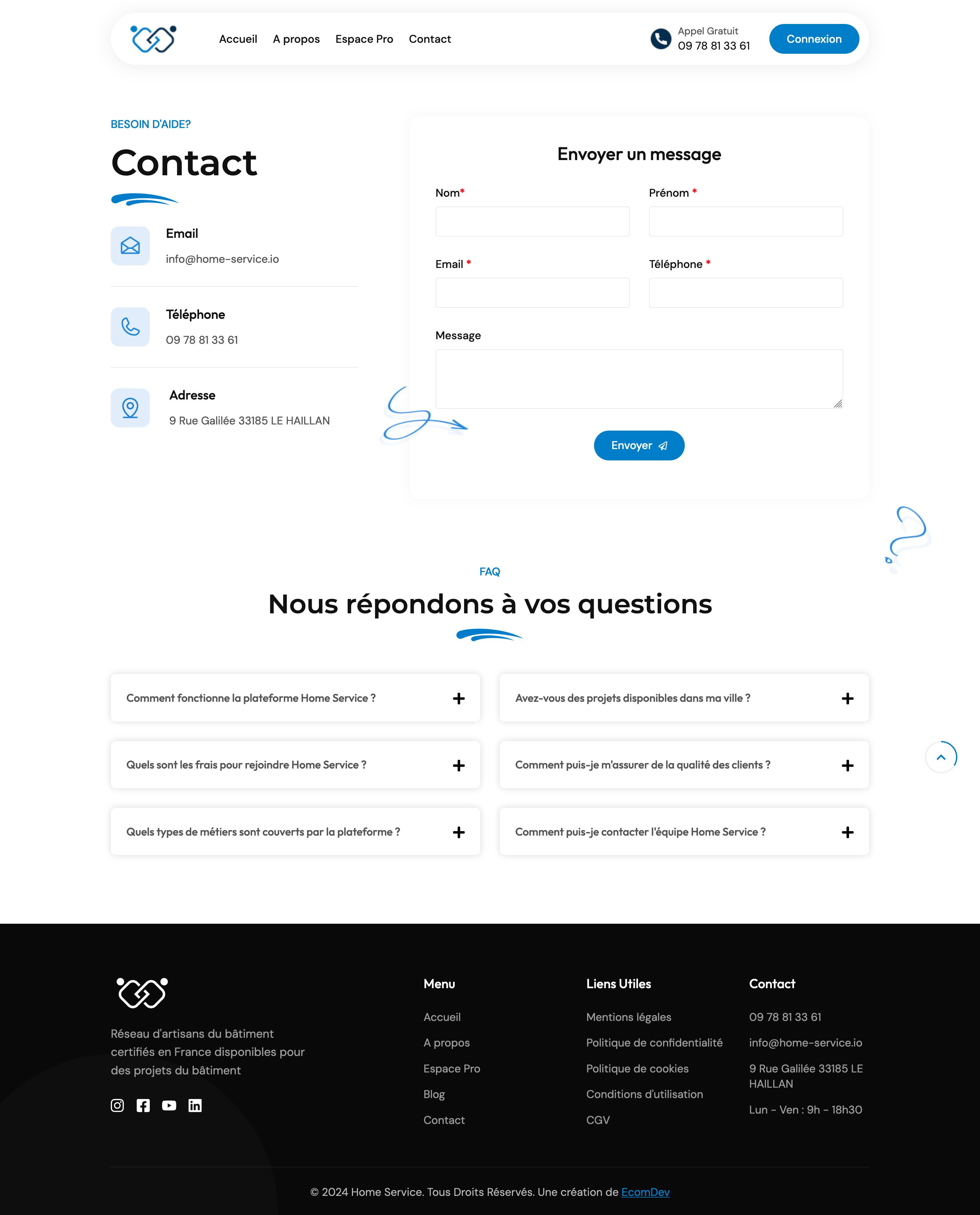 Home Service est une plateforme de mise en relation entre les artisans 🔨 et les clients dans tous les départements de la France 🇫🇷