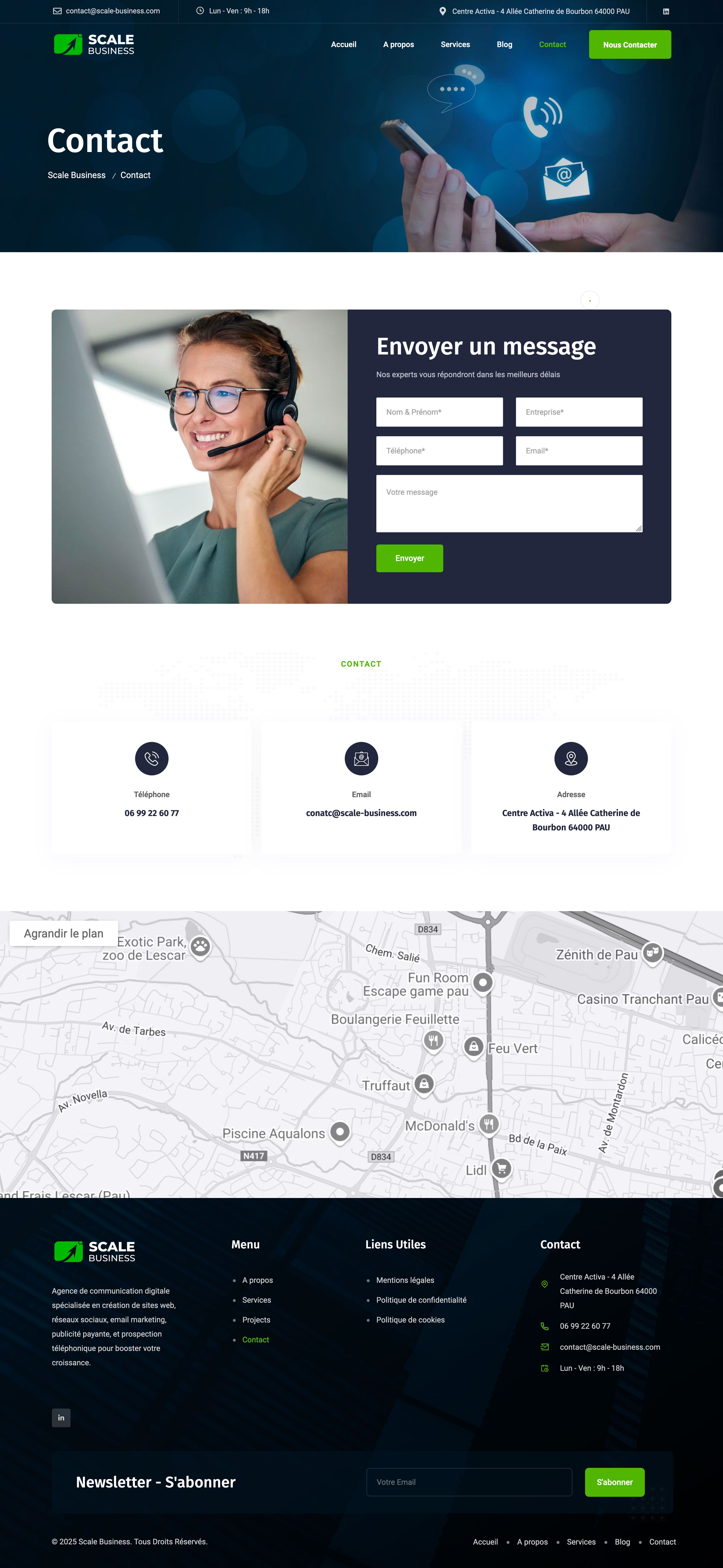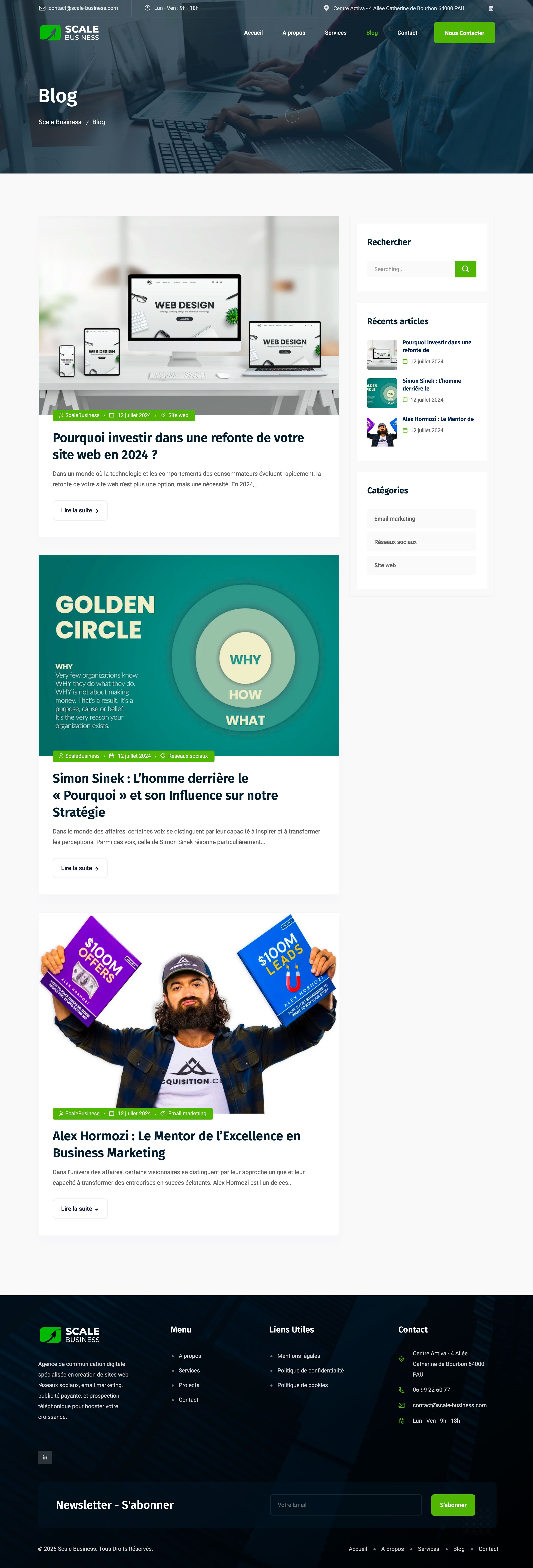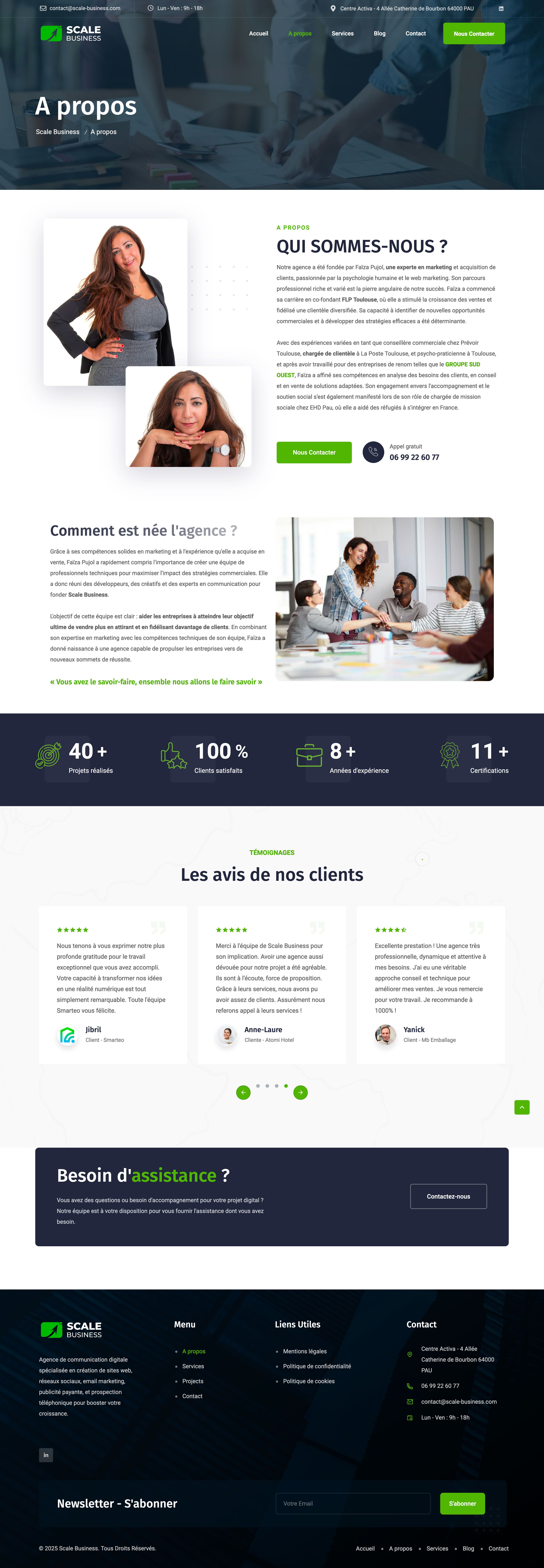 Scale Business est une agence web et de marketing digital avec laquelle je collabore régulièrement. Elle me confie la réalisation de ses projets liés à la création de sites web. Vous pouvez voir que sur son site ce sont mes réalisations qu'elle je met en avant.