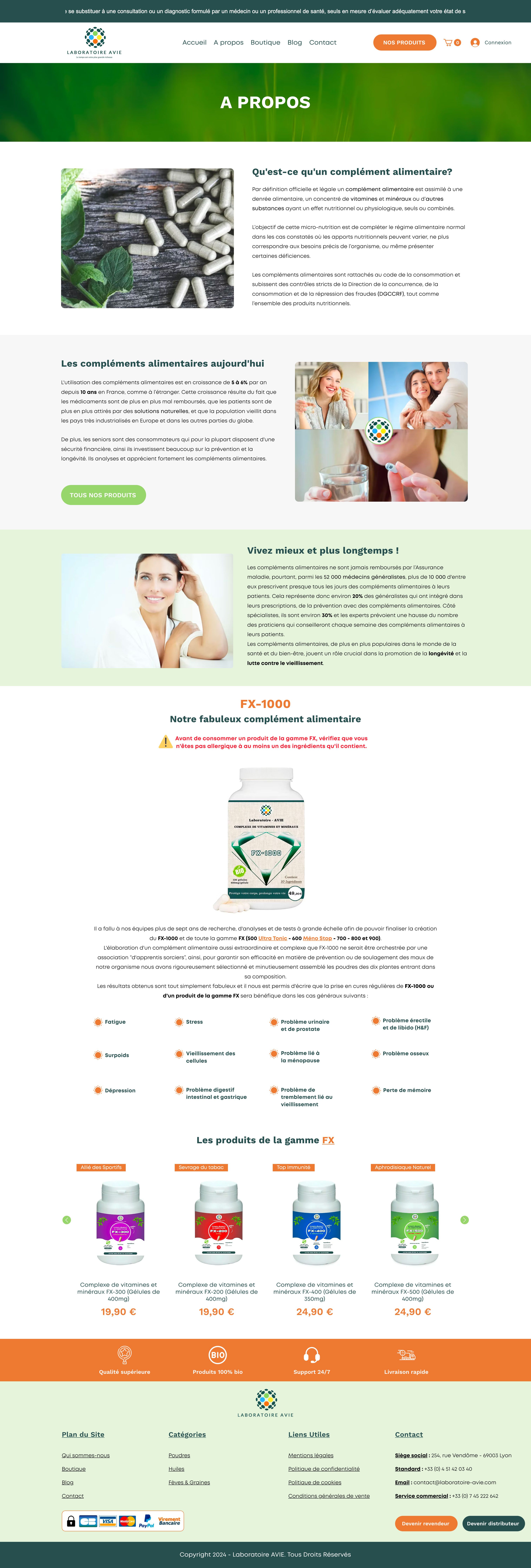 Laboratoire AVIE est une boutique de vente de compléments alimentaires 100% BIO en France.