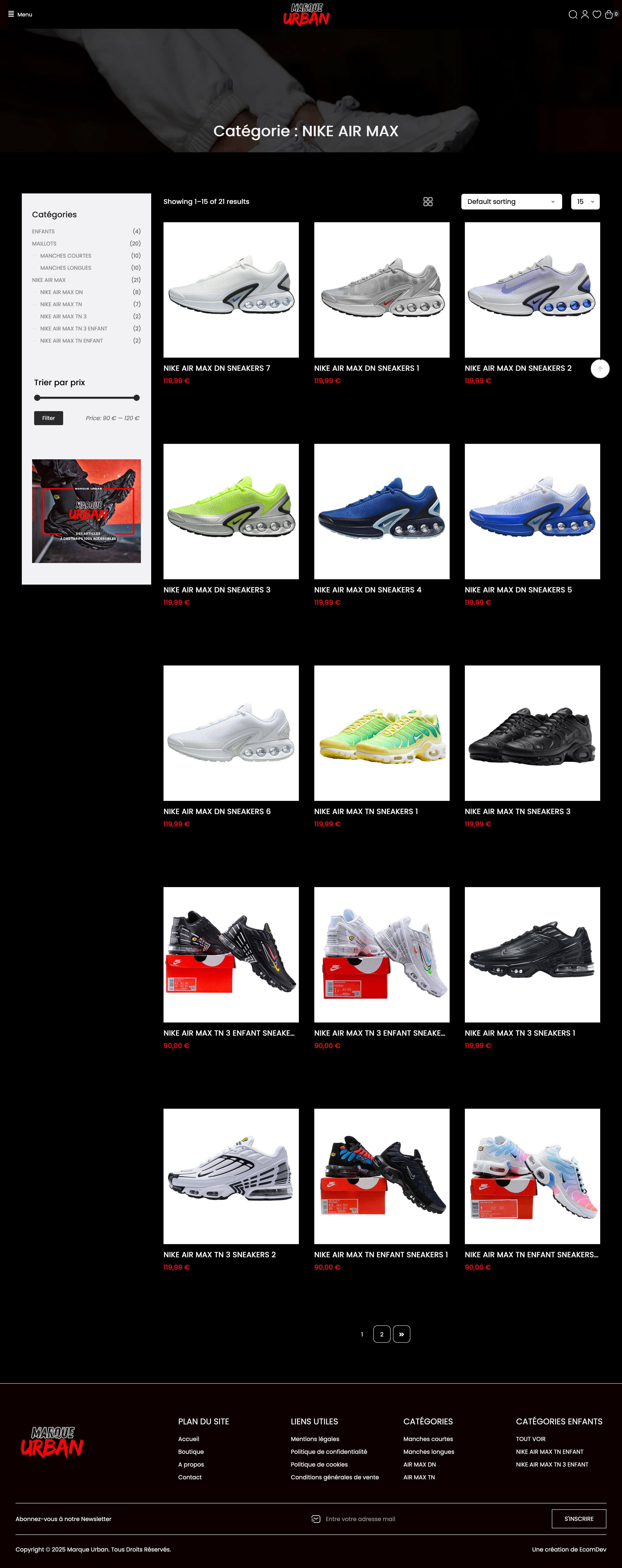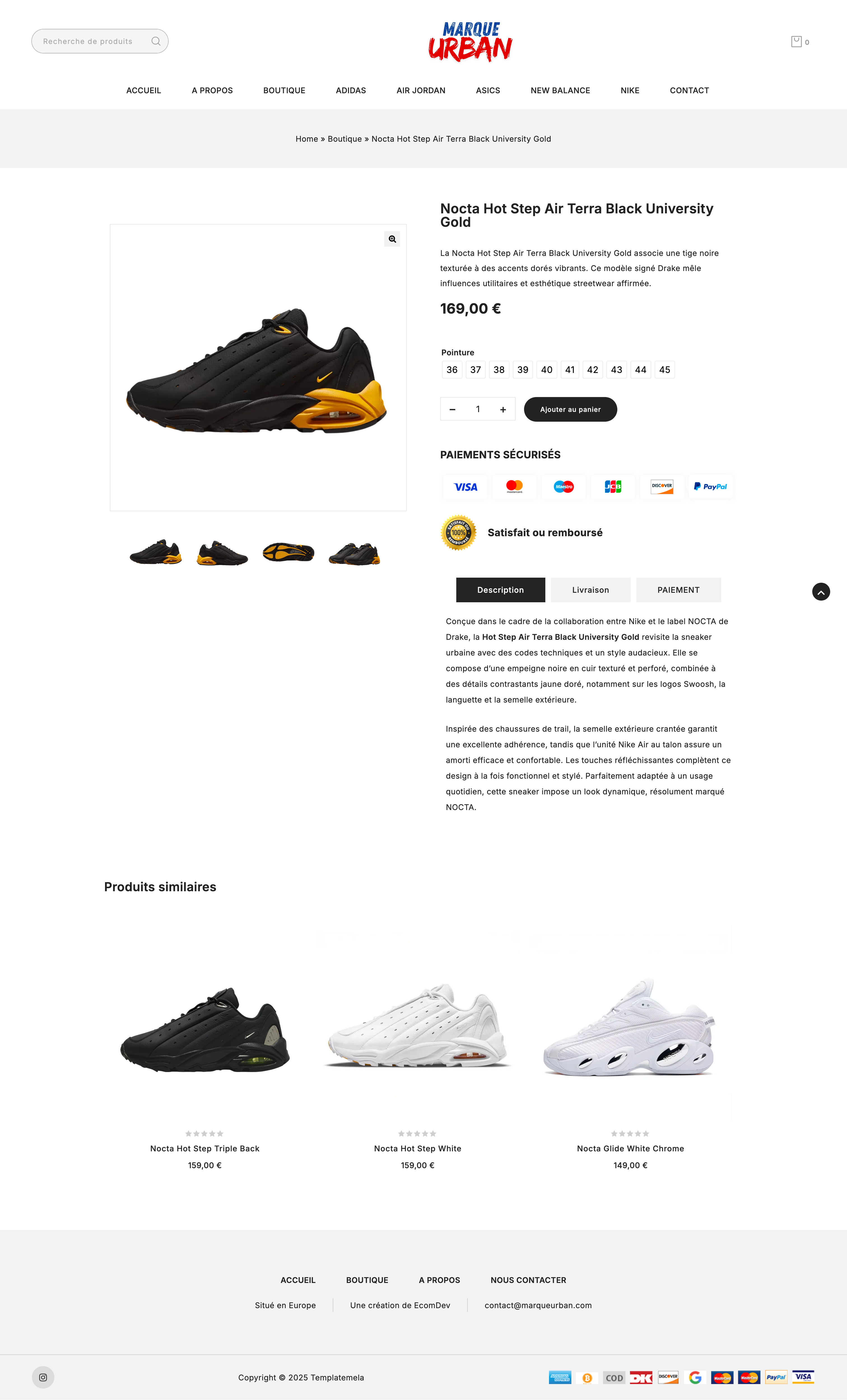 Marque Urban est une boutique de vente de Sneakers et de maillots de foot.