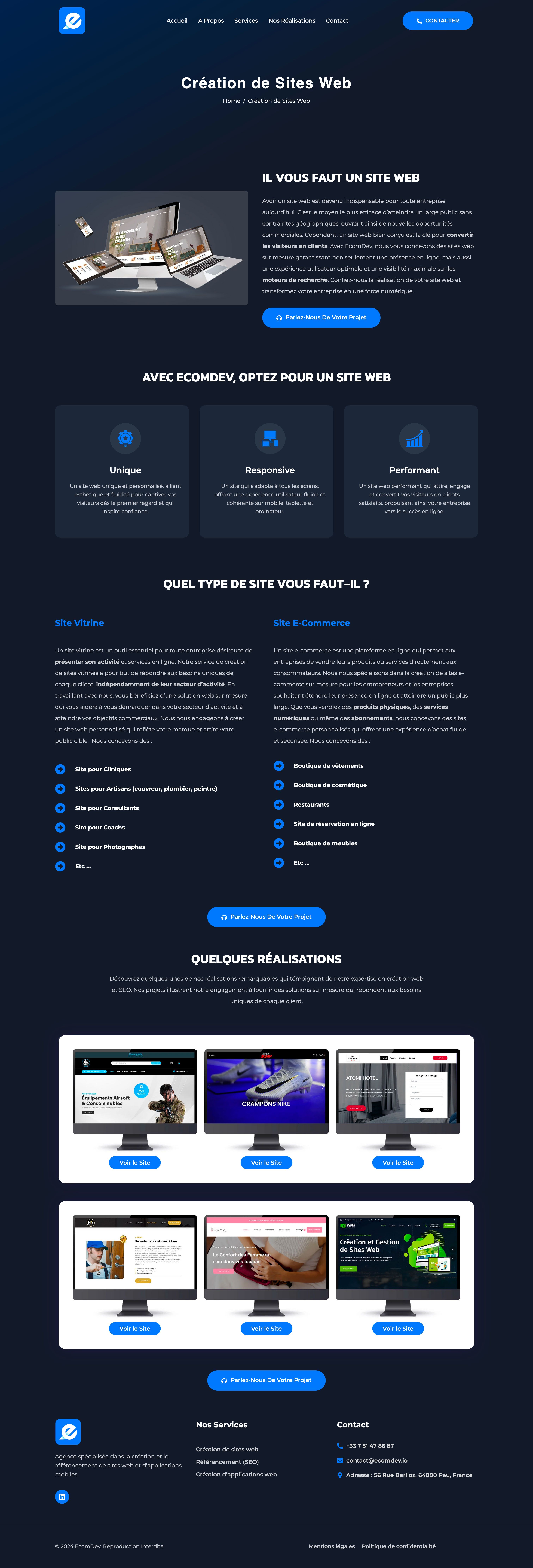 ✅ La création de sites web (vitrines et e-commerce) ✅ La refonte de sites web ✅ Le référencement de sites web ✅ La maintenance de sites web
