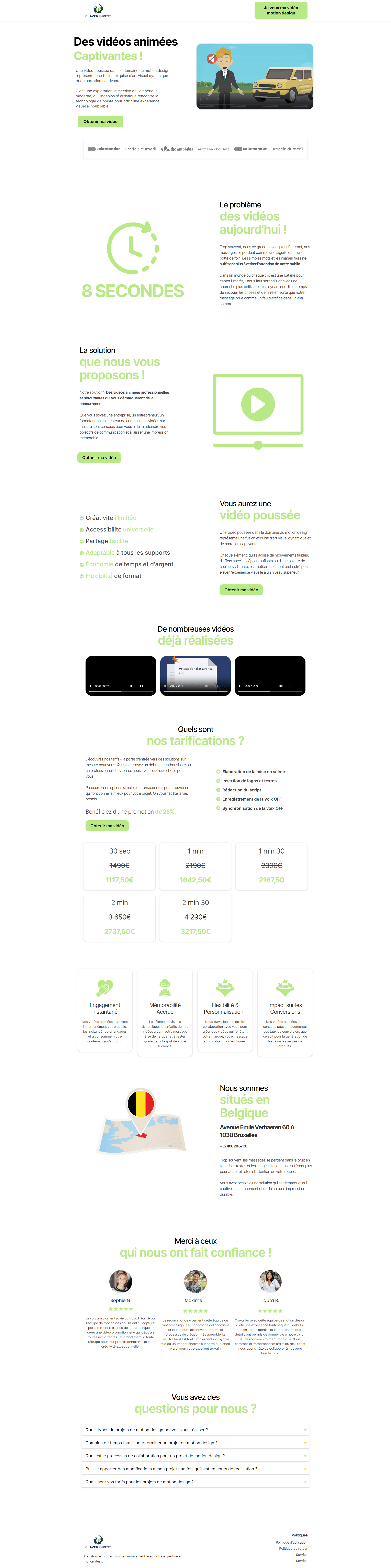 Avec plusieurs projets réalisés pour des entrepreneurs, PME, et particuliers, j’ai affiné ma méthodologie pour m’adapter à chaque besoin spécifique. Aujourd’hui, je mets à votre disposition mon expertise pour vous aider à atteindre vos objectifs.