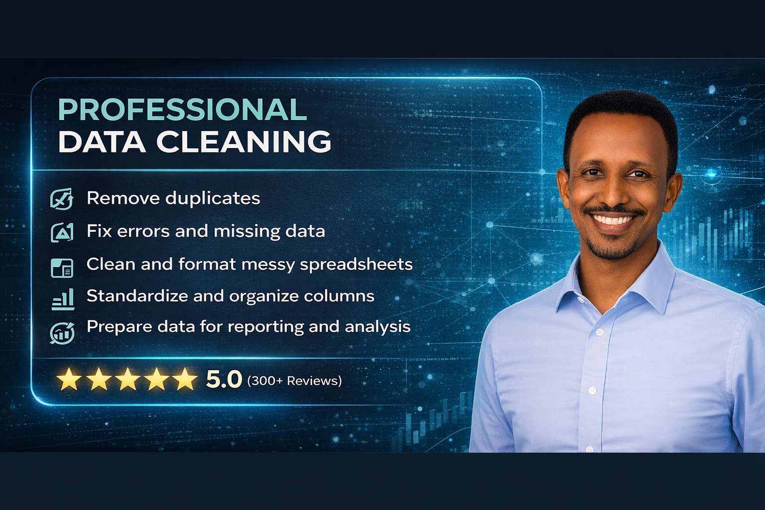 I will clean, organise, and prepare your messy data so it’s ready for analysis, reporting, or business use. Here’s what I do: ✔ Remove duplicates & inconsistent records ✔ Fix missing values and errors ✔ Standardize formats (dates, numbers, text) ✔ Va