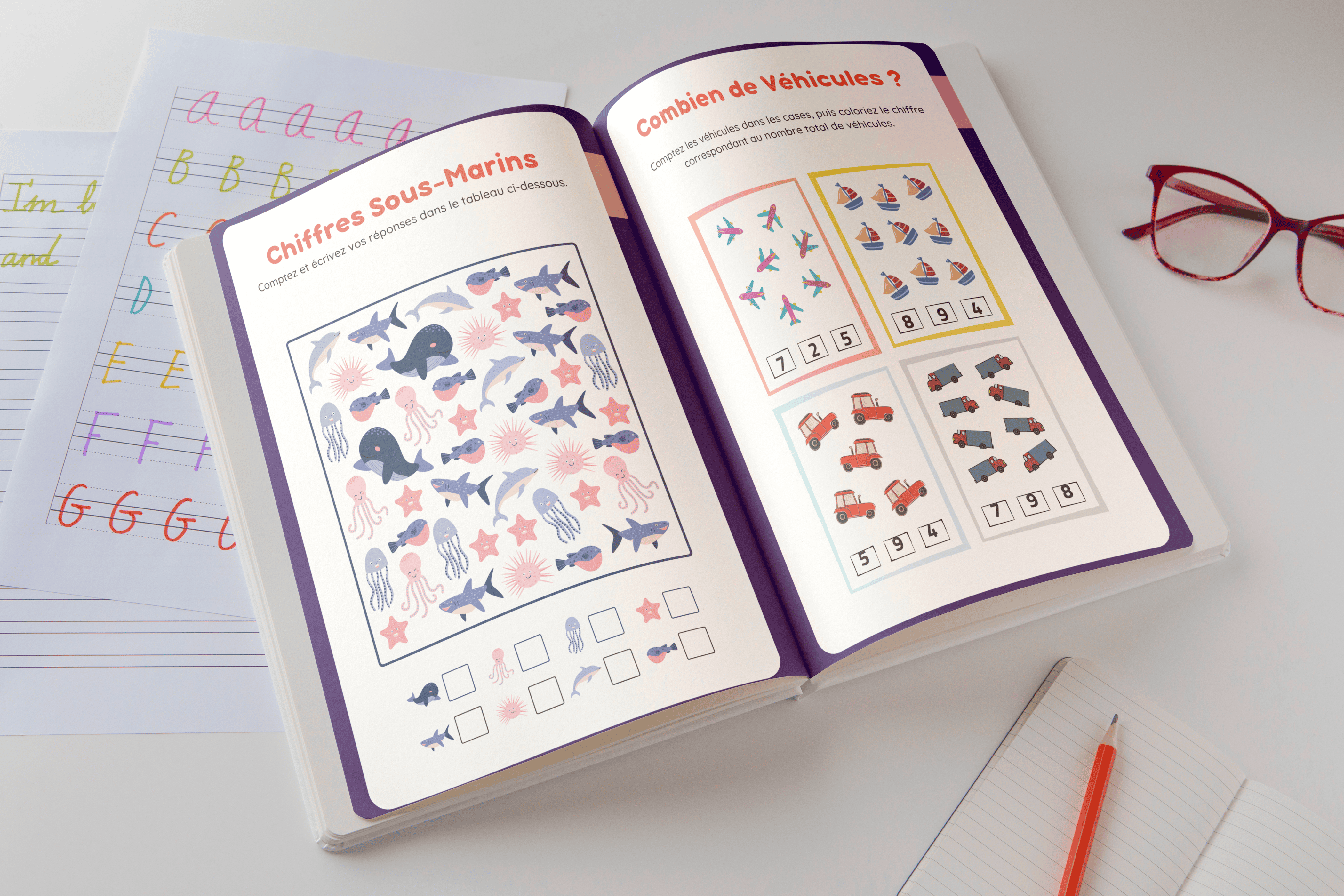 Je vais concevoir un cahier d'exercices près scolaire pour enfant