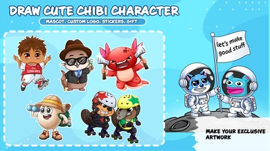 I will draw chibi characters, cartoon animal illustrations, or stickers in my style