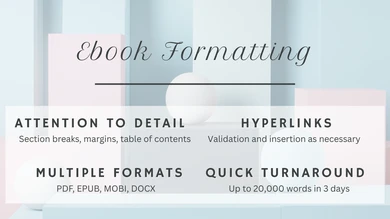 I will format your eBook of up to 20,000 words to be ready for online publishing (EPBUB, MOBI, PDF)
