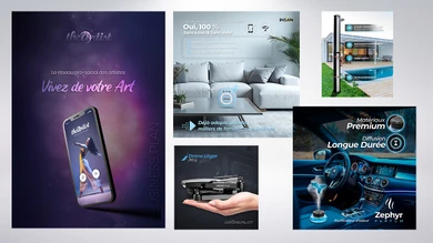 Use graphic designers to create marketing designs that attract, delight, and convert your users and potential clients. Thanks to a talented designer, you can turn all your ideas into powerful and custom visuals that will highlight your product, service, business, or brand in the best way possible. A nice visual for social media or your website, digital marketing content that can be used in advertising, custom pamphlets to distribute in your boxes or on your packaging when you're sending a product to clients. The possibilities are endless. You can also call upon designers to help you with your cover images for different social media platforms.