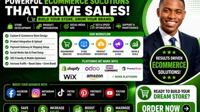 I will build shopify website odoo woocommerce prestashop wix Amazon socia media ads product integration