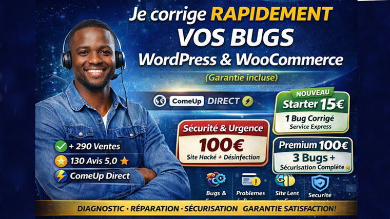 Je vais corriger rapidement et définitivement vos bugs WordPress & WooCommerce