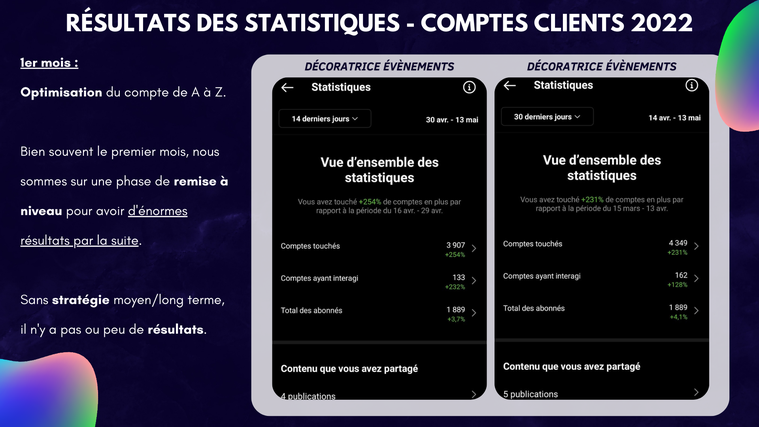 Instagram est un marathon, pas un sprint. Toutefois, grâce à l'optimisation de votre profil et à une fréquence de publication stratégique (surtout avec les Reels), les premiers signaux positifs (hausse de la couverture, augmentation des interactions) sont généralement visibles dès les 3 premières semaines. -
