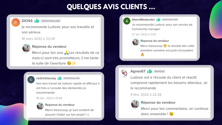 Modération basique : je réponds aux commentaires sous les posts (limite de 50 commentaires traités par mois pour garantir un suivi de qualité).