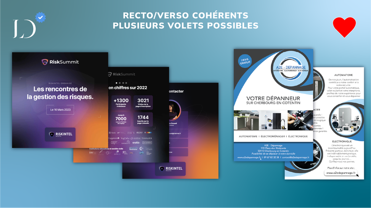 - Une affiche/flyer, moderne et attractive en HD (300 dpi), cohérente avec votre marque, impactante pour votre cible !