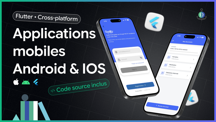Nous développons votre application mobile cross-platform avec Flutter : un seul code source, deux plateformes, zéro compromis sur la qualité. Du brief initial à la publication sur l'App Store et le Google Play Store, notre équipe gère l'intégralité du projet : analyse, conception, développement, tests, déploiement.