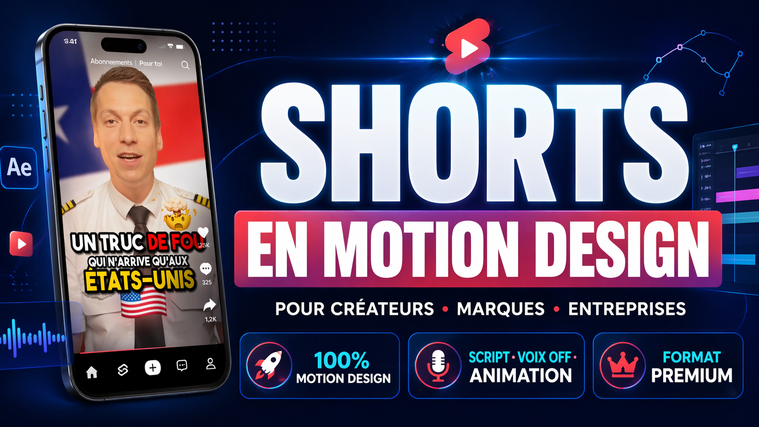 Nous réalisons des shorts premium en motion design, pensés pour produire un rendu plus propre, plus fort, plus lisible et plus crédible.