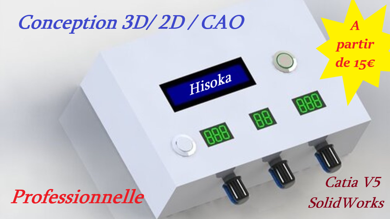 Je vous propose mes services pour la conception 3D de votre produit avec le logiciel CATIA V5 ( je travaille aussi avec le logiciel SolidWorks et d'autres logiciels open source).