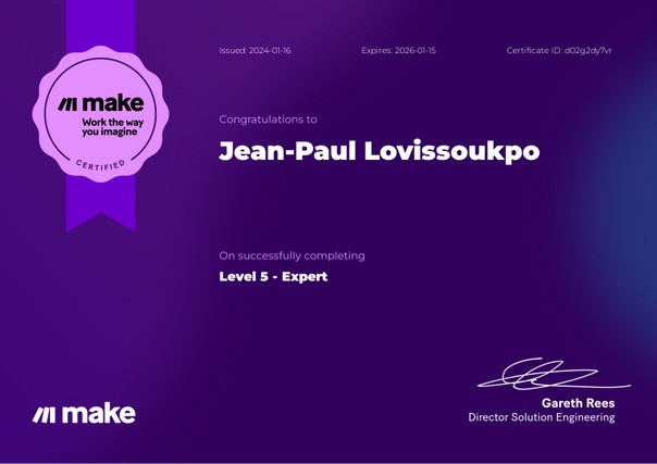 | 👨💻 Expertise technique complète | Maîtrise de n8n, Make et Zapier dans toutes leurs dimensions |