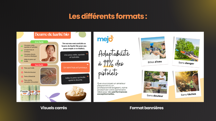 | 🍉 BOOST EXTRA | Vous recevrez 3 bannières + 4 visuels au format carré + 4 descriptions | $75.93 |
