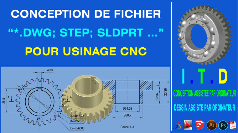 Je vais créer le fichier dwg, step, sldprt pour votre projet en CFAO