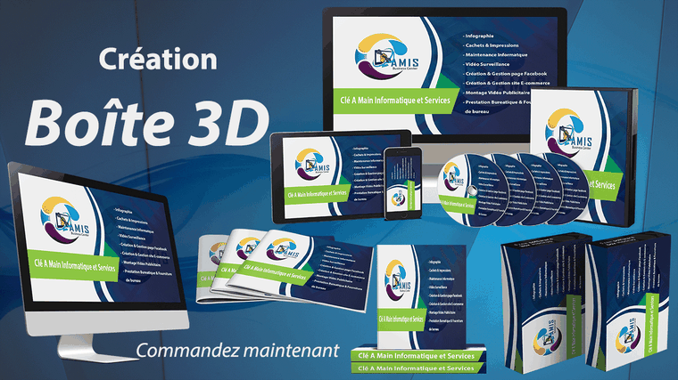 - Comprends Boite 3D/ mockup pour votre produit/service (possibilité d’avoir plus en option)