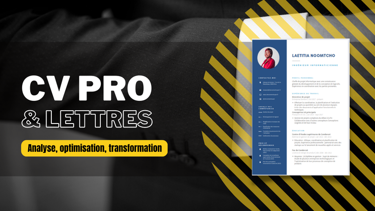 Contrairement aux CV en ligne, CV maker ou CV gratuits, nous analysons, améliorons, optimisons et transformons votre CV en un CV professionnel adapté à votre profil.