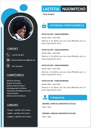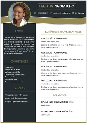 Avec ou sans photo, votre CV mettra en valeur vos compétences et expérience professionnelle à travers un contenu sélectionné et rédigé avec soin.