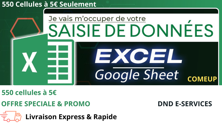 Avez-vous plusieurs données à saisir dans votre Google Sheet ou Excel alors que vous n’avez pas du tout de temps ? Ne vous inquiétez pas, je suis la personne idéale qu’il vous faut pour vous apporter un coup de main.