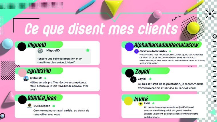 | Avec plus de 400 clients , ils témoignent de la qualité de mes services : |