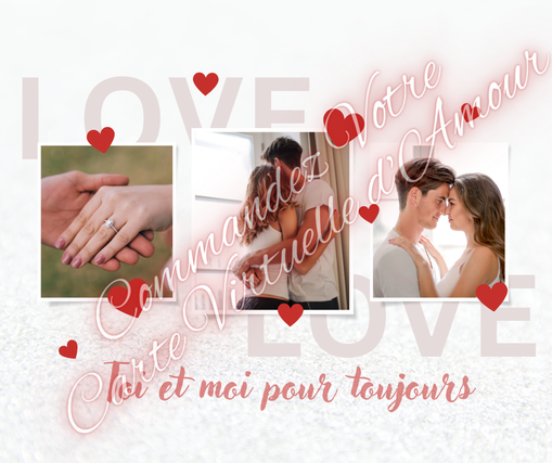 Alors optez pour une carte virtuelle d’amour que vous pourrez envoyer à votre âme sœur en messages privés via les réseaux sociaux (Whatsapp, Facebook, Snaptchat, etc.) ou par e-mail. L’élue de votre cœur sera forcément sensible à cette jolie attention.