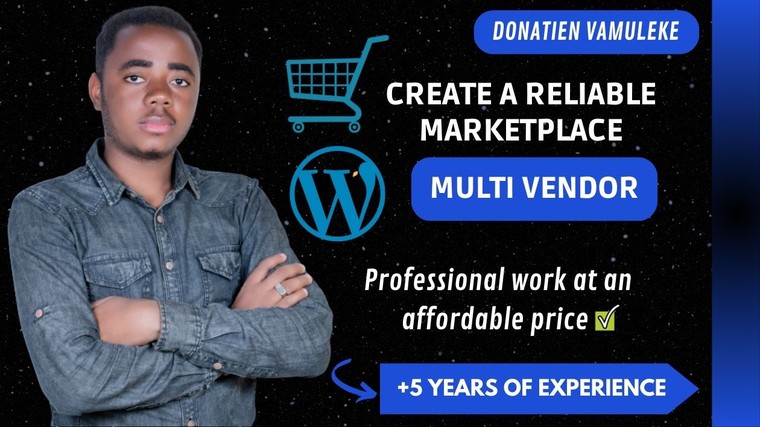 My name is Donatien Vamuleke, I've been creating websites of all kinds for over 5 years now, and I'm here today to create a turnkey, optimized and secure marketplace for you.