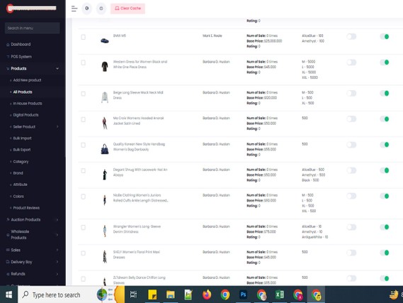 • Variation Details: Detailed listings of product variations such as color, size, and quantity.
