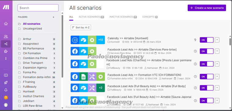 Scénario : Créez des scénarios avec des déclencheurs et des actions pour automatiser des processus complexes.