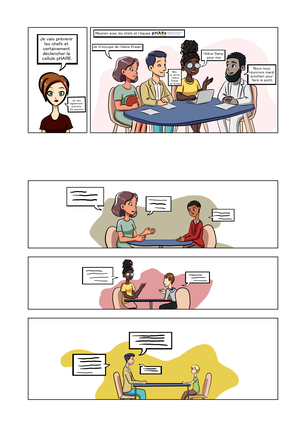 Mise en page sur un format A4 avec vignettes, bulles et dialogues