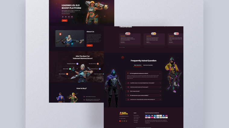 3. Five Sections including hero sections, about us, our goal, services, FAQs, Our team, and footer.
