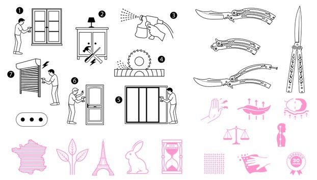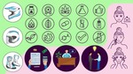 Icons designed to simplify the understanding of instructions and complex information in user manuals and infographics, making manuals more user-friendly and infographics more informative.