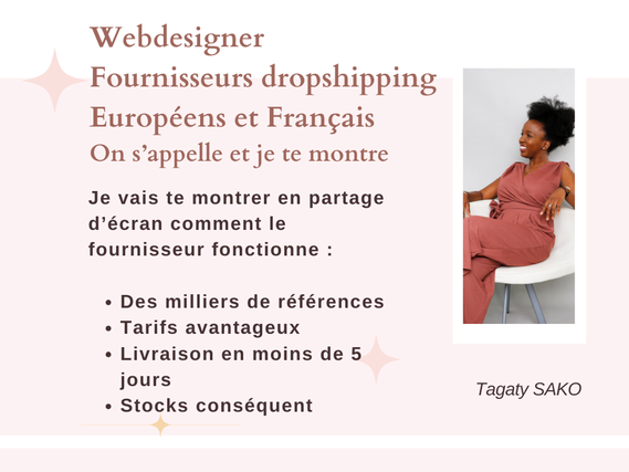 Pour $17.55, je vous enverrai par message 1 lien vers le site d'1 plateforme de fournisseurs français et européen. Différentes catégories de produits s'offrent à vous et ces fournisseurs vont s'occuper de la livraison de vos commandes clients. Vous pourrez suivre le stock de vos produits choisis depuis votre compte sur la plateforme.