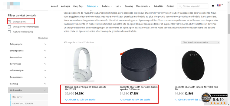 Différentes catégories de produits s'offrent à vous et ces fournisseurs vont s'occuper de la livraison de vos commandes clients. Vous pourrez suivre le stock de vos produits choisis depuis votre compte sur la plateforme.