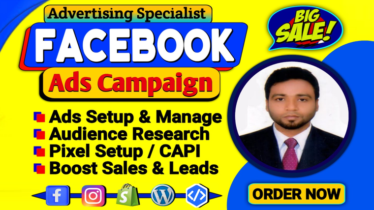 Hi, I'm Sheikh Abul Hussain. A Certified Facebook & Instagram Ads Campaign Manager And Digital Marketer with over 5 years of experience. My Goal is to offer essential services that directly influence the Profitability of my client's Business. I will serve you Marketing Plan, Marketing Strategy and Advanced Advertising Method. My experience on: 🟡Facebook Ads 🟡Instagram Ads 🟡Facebook Pixel Install 🟡Facebook conversion API 🟡Domain Verify & Event Setup 🟡iOS 14.5+ Update I will provide you satisfaction service. Thank you.