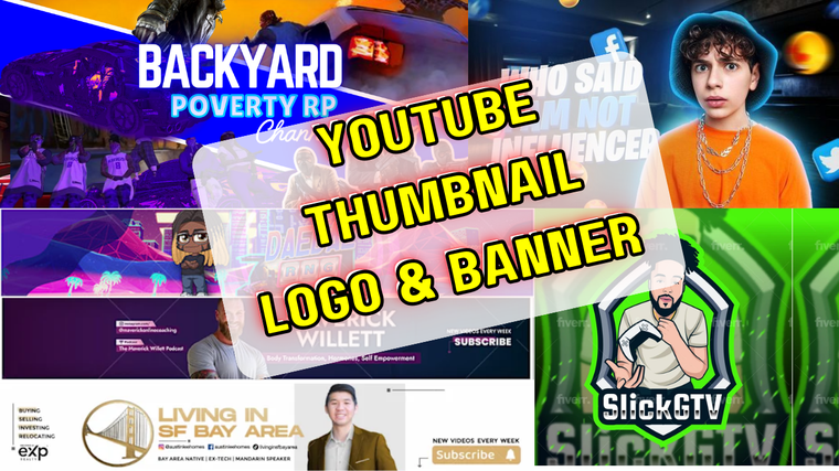 YOUTUBE THUMBNAILS, YOUTUBE CHANNEL BANNER AND LOGO