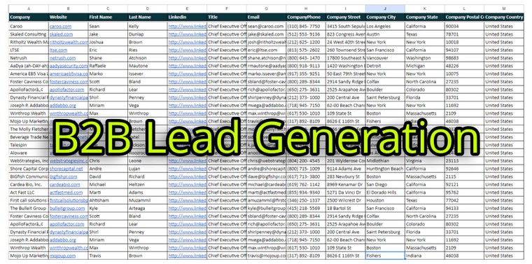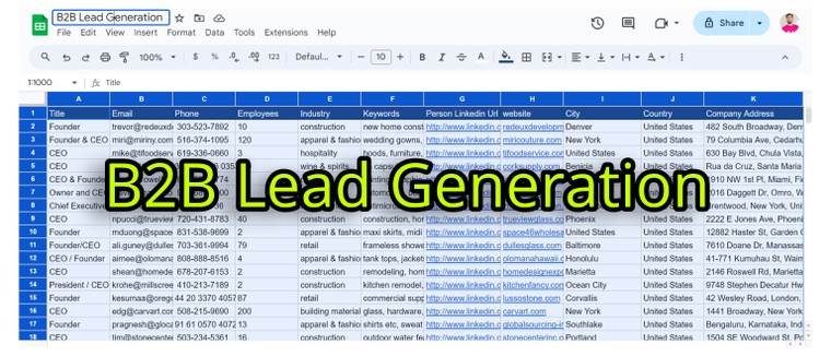 Welcome to my Comeup. Are you looking for B2b lead generation, targeted leads, web research, LinkedIn leads or cold email lists to grow your business? Yes, I'm here to get you done quickly. I have a team with whom I work quickly and with experience.