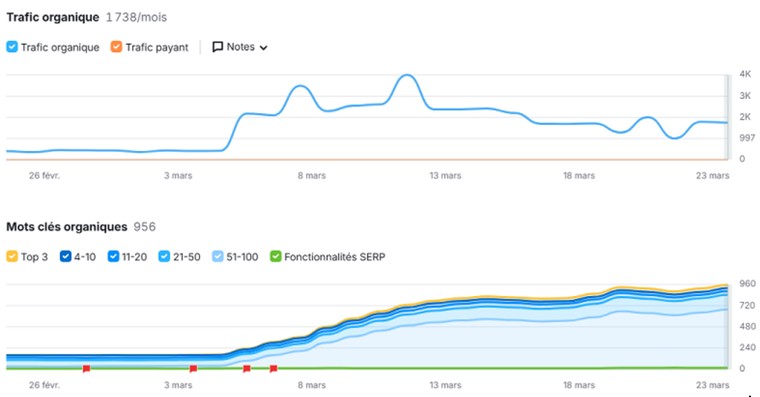 - Origine du trafic : “Trafic réel provenant de sources ciblées et conformes aux bonnes pratiques SEO.”