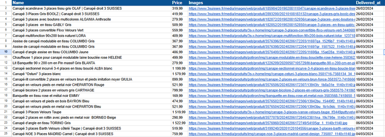 - Extraction de données visibles sur un site web de votre choix (produits, contacts, tableaux, horaires, etc.)