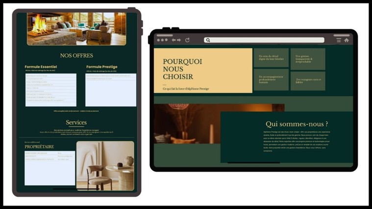 | 🏠 Page d’accueil impactante | Une entrée visuelle soignée qui capte l’attention dès les premières secondes. |