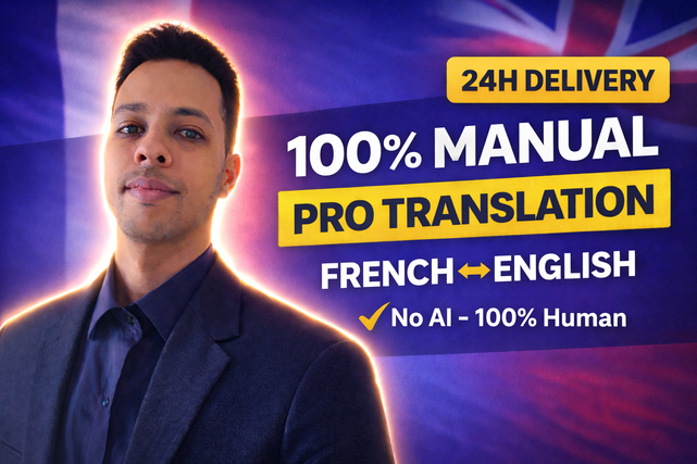 I provide high-quality, 100% human translation between English and French, ensuring your text sounds natural, accurate, and culturally appropriate.
