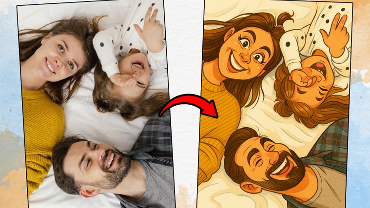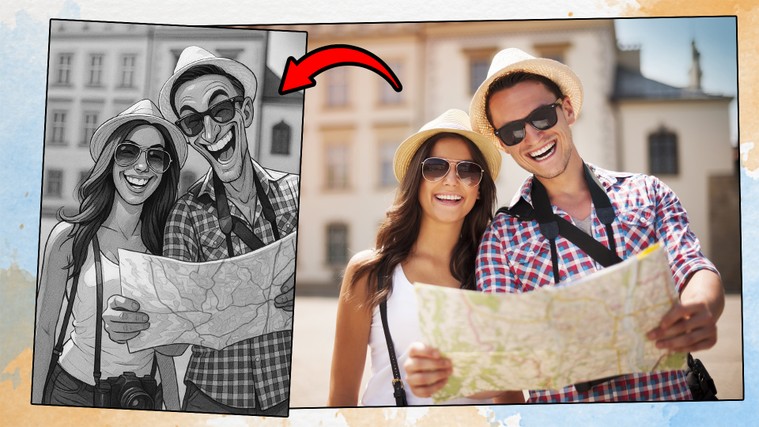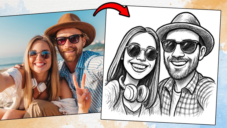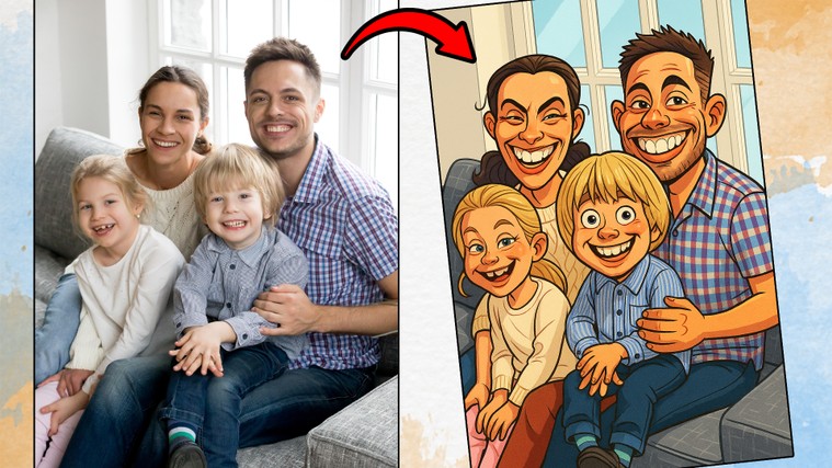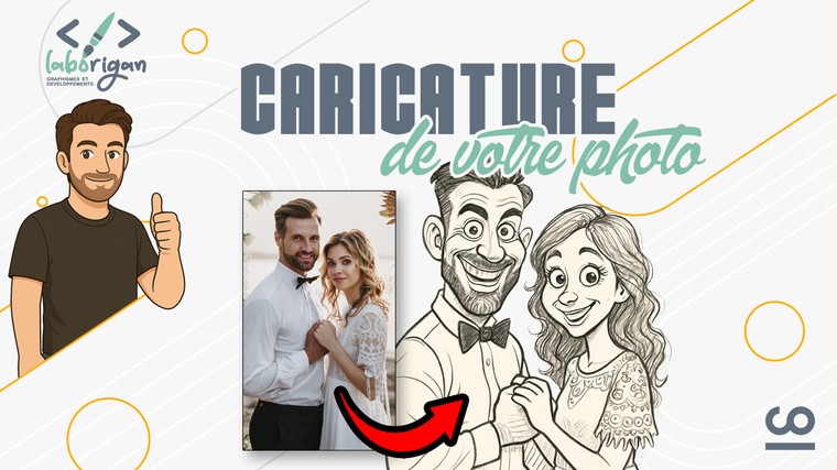 Je transforme votre photo en caricature numérique réalisé avec l'IA (après retouches éventuelles à la main), fidèle à la pose d’origine, avec un style fait main, expressif et humoristique.