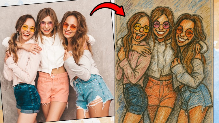 Transformation en caricature (style à la main).