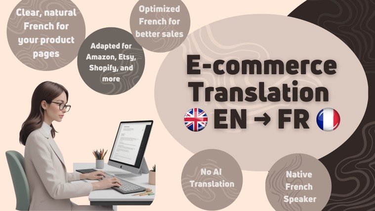 As a native French speaker with a writing background and experience in digital content, I provide professional English to French translations specifically suited for e-commerce. Clear, compelling, and precise.