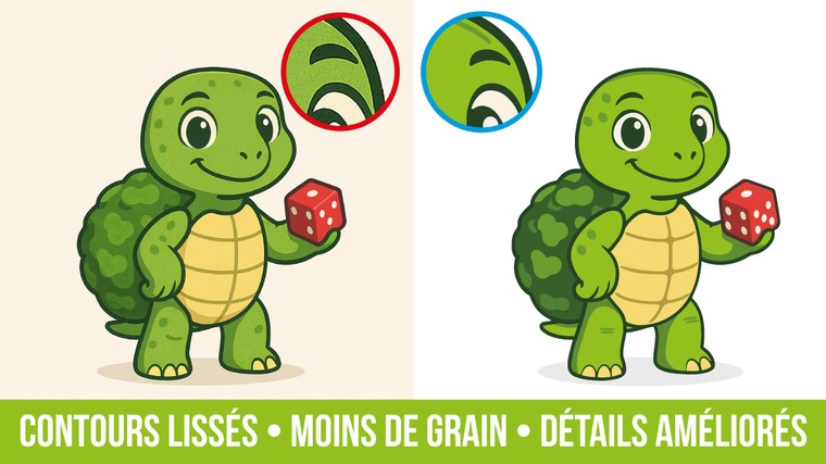 - Redessin complet à la main : Suppression du grain, du flou et des artefacts.