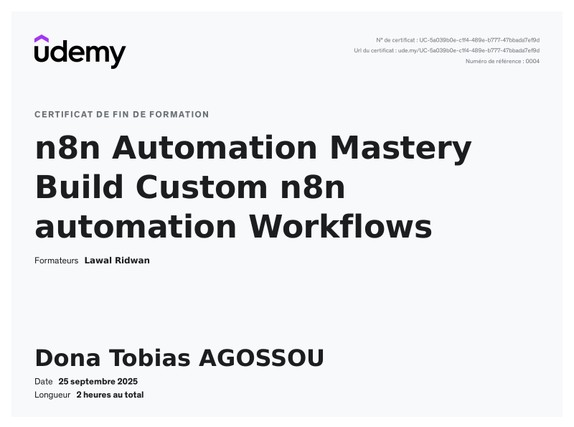 Ne laissez plus les tâches répétitives freiner votre croissance. L'automatisation intelligente est à portée de main, et je suis là pour vous guider à chaque étape. Mon expertise en n8n et Make, combinée à une intégration stratégique de l'IA, vous garantit des solutions innovantes et performantes.